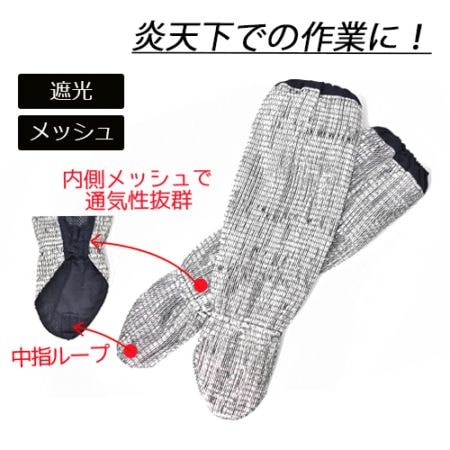 遮光腕カバー手甲付き 1双 YZE004 春夏 アルミ アームカバー 手甲付き 遮光 紫外線対策 農作業 草刈り 全長約50センチ ヤマショウ