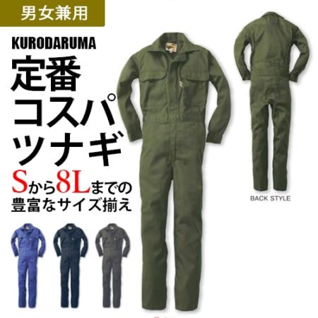 衿付タイプ T/Cツナギ服 49112-2 年間 定番ツナギ 酪農 農作業 整備 S-8L クロダルマ