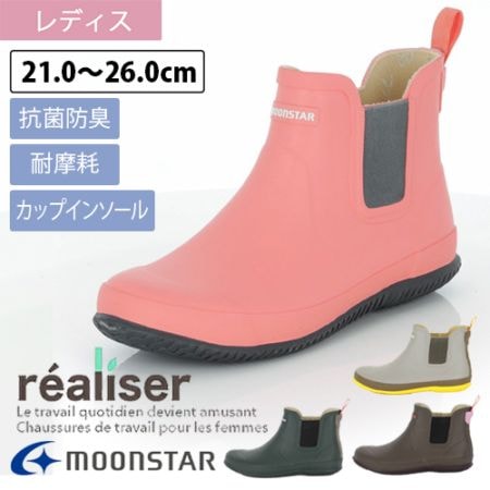 realiser ショート丈レインブーツ MS-RLS02 長靴 サイドゴアブーツ 抗菌 防臭 21.0-26.0センチ MOONSTAR