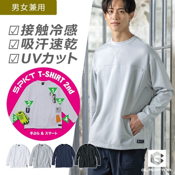 フェイスコットンDRY 5ポケット長袖Tシャツ G108 春夏 接触冷感 吸汗速乾 UVカット 裾ドローコード ルーズフィット 農作業 XS-3XL コーコス