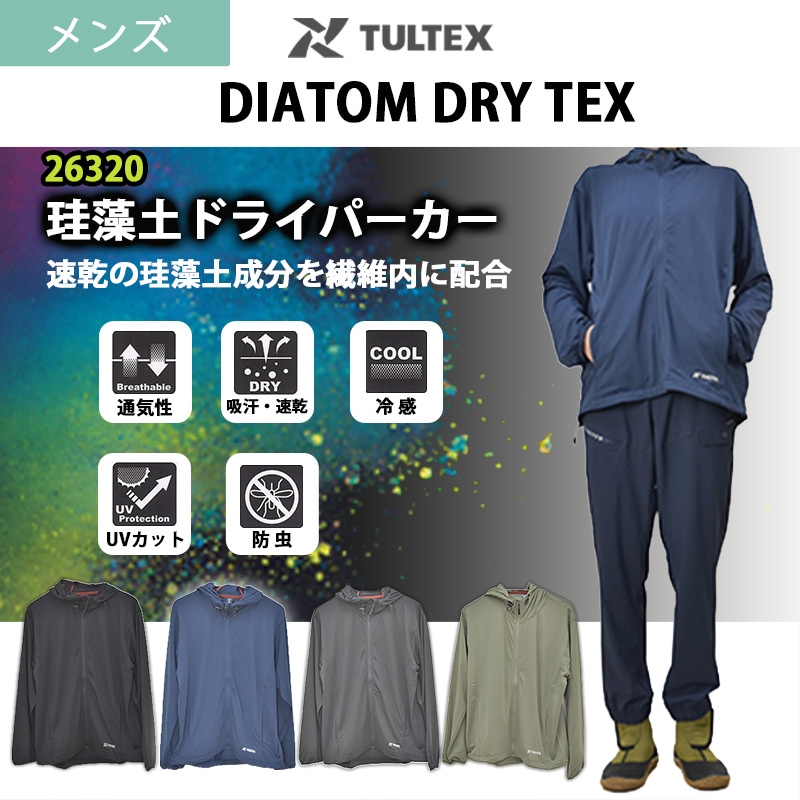 珪藻土ドライパーカー 26320 メンズ 春夏 調湿 速乾 冷感 UV 防虫 M-3L タルテックス TULTEX