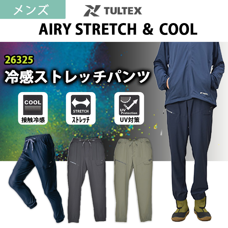 冷感ストレッチパンツ 26325 春夏 メンズ 接触冷感 ストレッチ UV対策 M-3L AIRY STRETCH & COOL タルテックス TULTEX