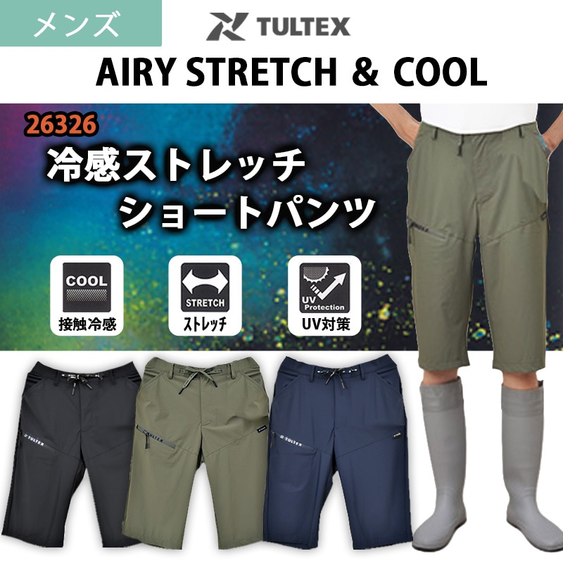 冷感ストレッチショートパンツ 26326 春夏 メンズ 半ズボン 接触冷感 ストレッチ UV対策 M-3L AIRY STRETCH & COOL タルテックス TULTEX