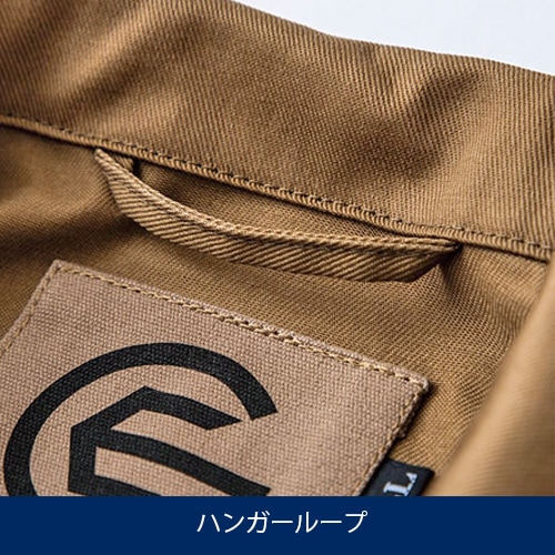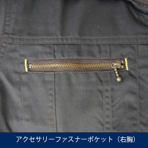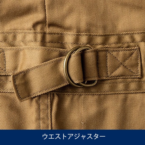 カジュアルに着こなせるファッション性のあるアクセサリーを使用した、ストリート系カジュアルモデルのつなぎです。
