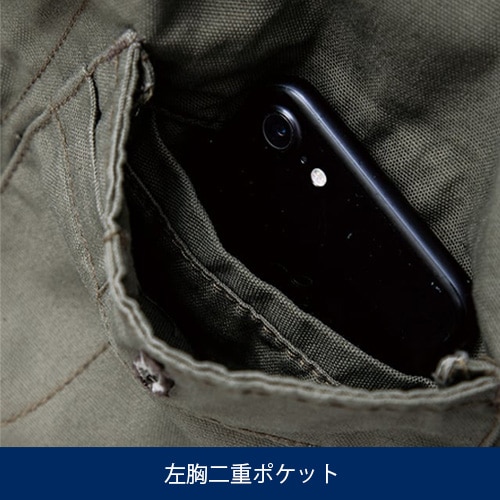機能面では、スマートフォンポケットをボトム脇に備え、左胸のポケットは収納力の高い驚きの2重構造仕様で右胸には内ポケットとバラエティー豊かな収納性。更に、動きやすさを考えた各種カッティングと充実。ミリタリーなデザインでありながらスタイリッシュフォルムのツナギです。