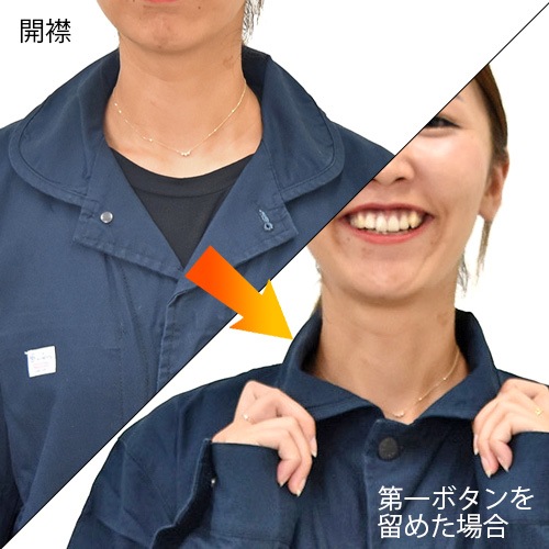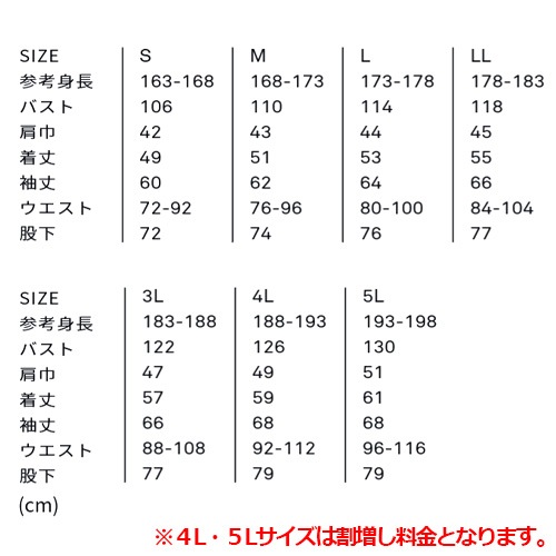 | 仕様 | 開襟、丸襟、ウエストアジャスター、膝立体裁断、左胸二重ポケット、クライミングカット |