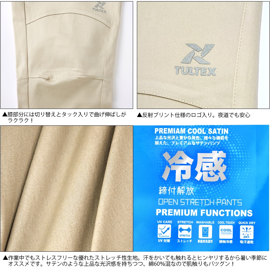 冷感サテンストレッチパンツ 22106 春夏 接触冷感 吸汗速乾 作業着 農作業 M-3L タルテックス TULTEX