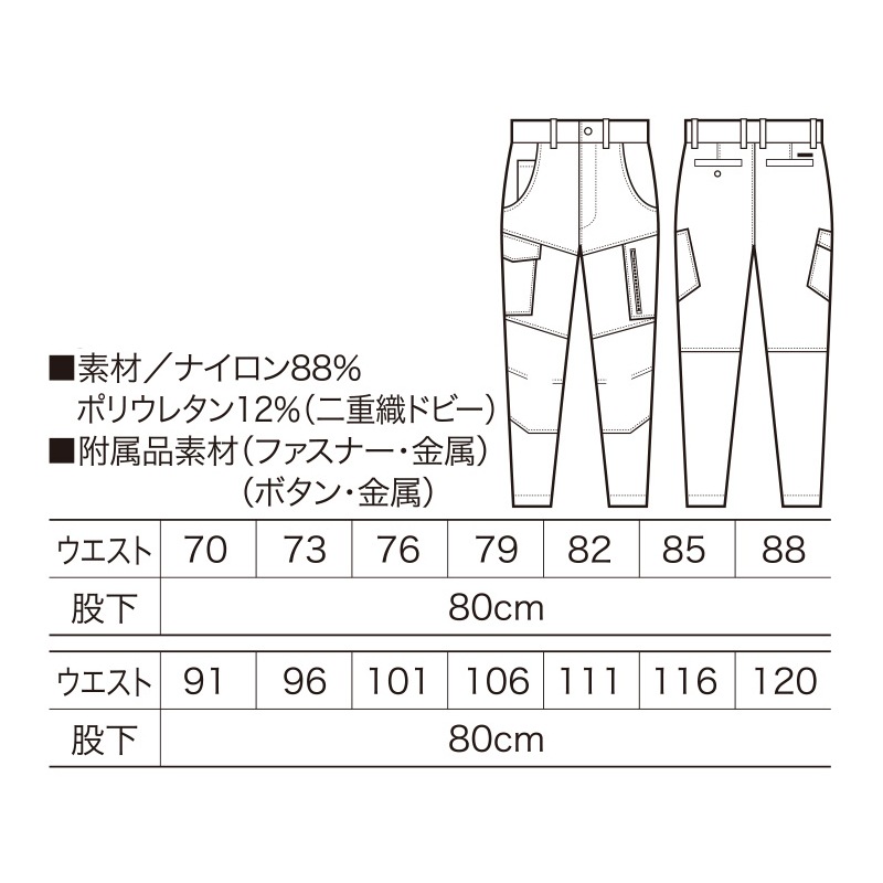 ストレッチカーゴパンツ ノータック 35674 春夏 冷感 速乾 防しわ UVカット 動きやすくさらっと快適 70-120 クロダルマ