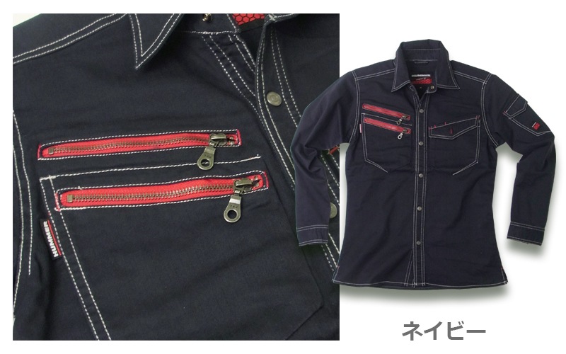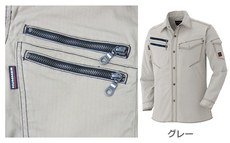 【値下げ】HUMMER長袖シャツ 601-6 ストレッチで動きやすい ハードワークも安心の綿素材 アタックベース