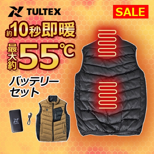 【在庫SALE】衿付ヒートベスト ベージュ AZ8310 防寒 防風 作業ベスト M-L タルテックス TULTEX