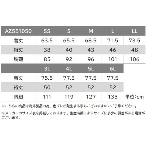 | サイズ | SS、S、M、L、LL、3L、4L、5L、6L |