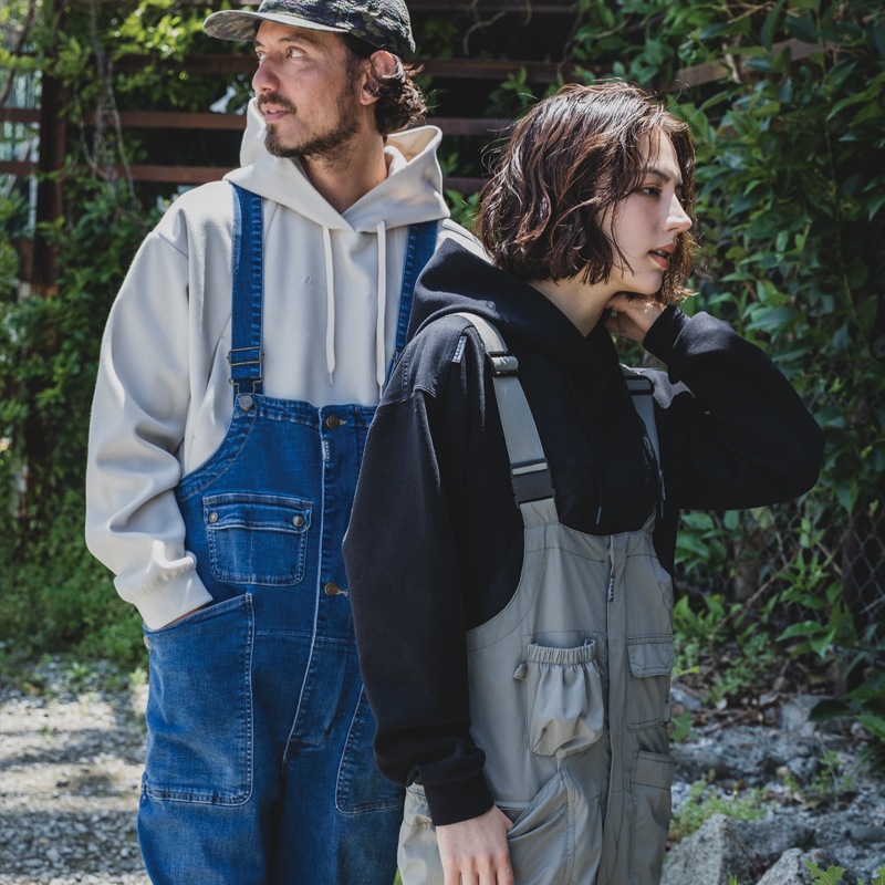 ストレスフリーな高ストレッチ性のデニム生地を使用した、たっぷりシルエットのデッキパンツ。着るシーンや着る人の性別・年代などを選ばずに着ていただけるウェアです。また、お手洗い時に便利なヒップオープンファスナーを採用しているのでわずらわしさを軽減。サイドに広がる大容量ポケットで収納力抜群です。作業用として、普段づかいにもマストな1着です。