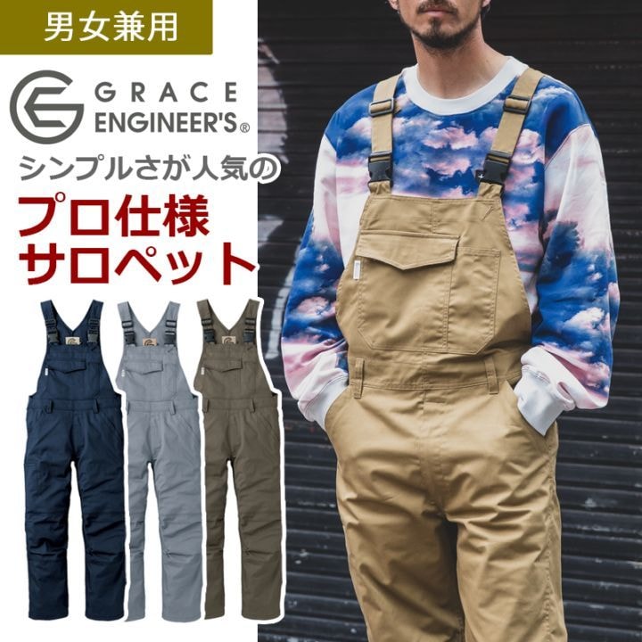 ベーシックサロペット GE690 秋冬 綿100% デニム ウエストアジャスター 作業着 SS-5L グレースエンジニアーズ