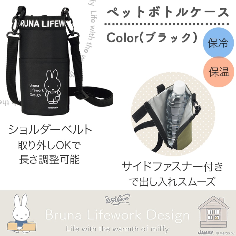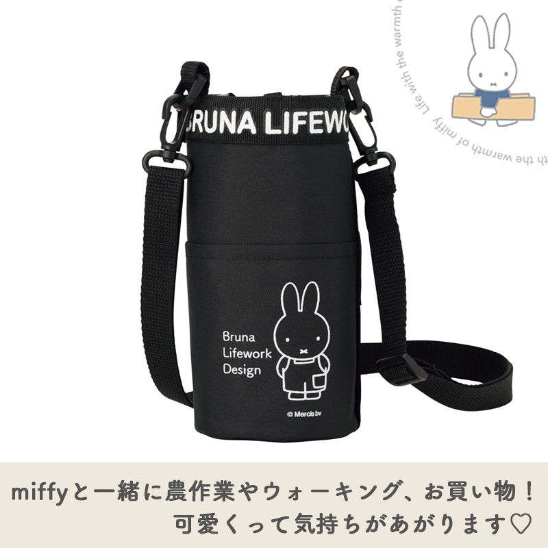 miffy 保冷ペットボトルケース J72641 ブラック ミッフィー ブルーナ 保冷 保温 長さ調整と取り外し可能ショルダーベルト 農作業 ウォーキング アウトドア お買い物 Bruna Lifework Design Workson
