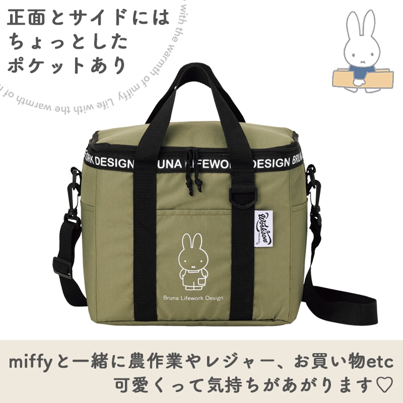 miffy ソフトクーラーバッグ J72646 カーキ ミッフィー ブルーナ 保冷 保温 長さ調整&取り外しOKなショルダーベルト 保冷剤収納可能ポケット 農作業 レジャー スポーツ観戦 お買い物 Bruna Lifework Design Workson