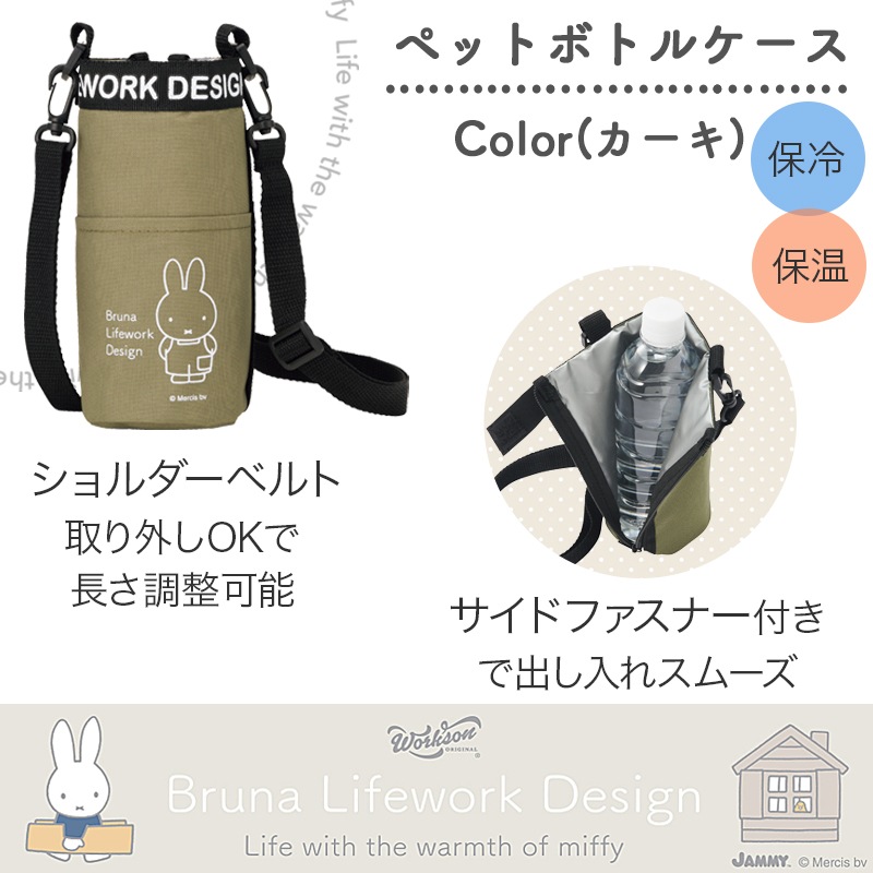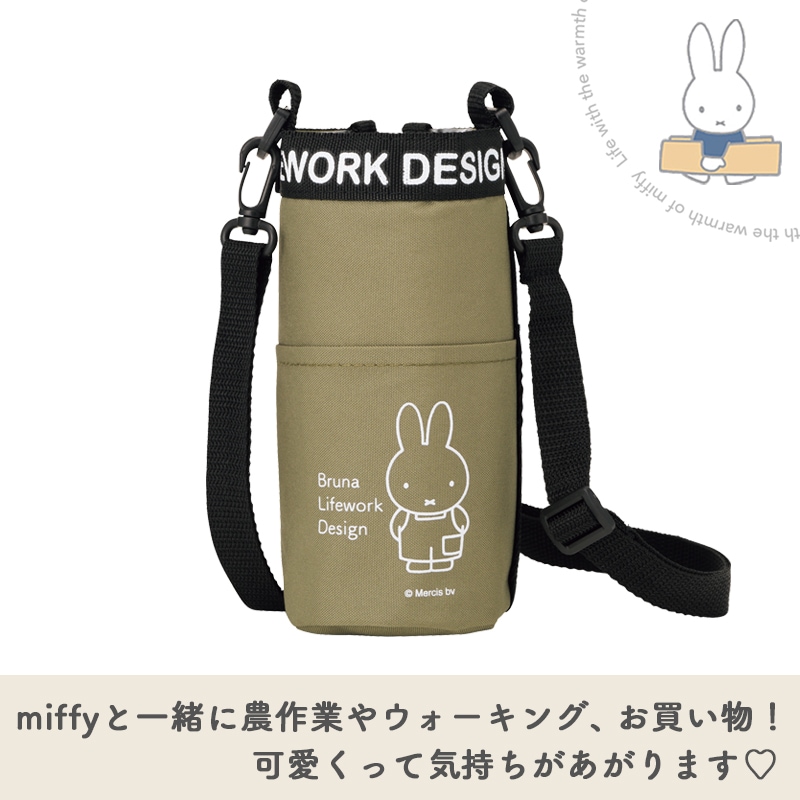 miffy 保冷ペットボトルケース J72642 カーキ ミッフィー ブルーナ 保冷 保温 長さ調整と取り外し可能ショルダーベルト 農作業 ウォーキング アウトドア お買い物 Bruna Lifework Design Workson
