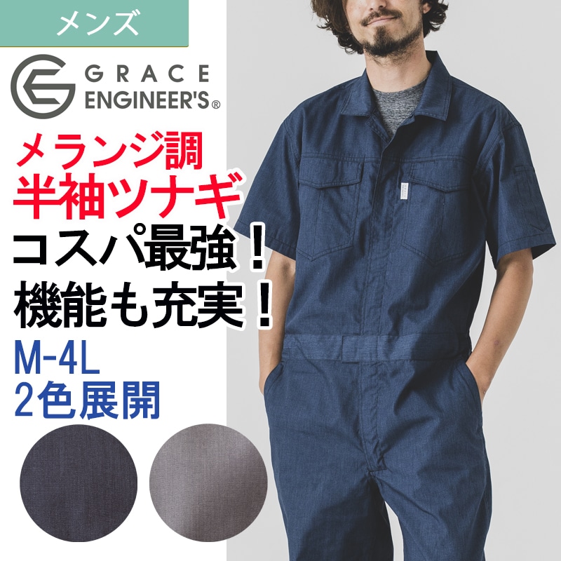 メランジ調 サマー半袖ツナギ GE845 春夏 つなぎ オーバーオール 作業着 M-4L グレースエンジニアーズ