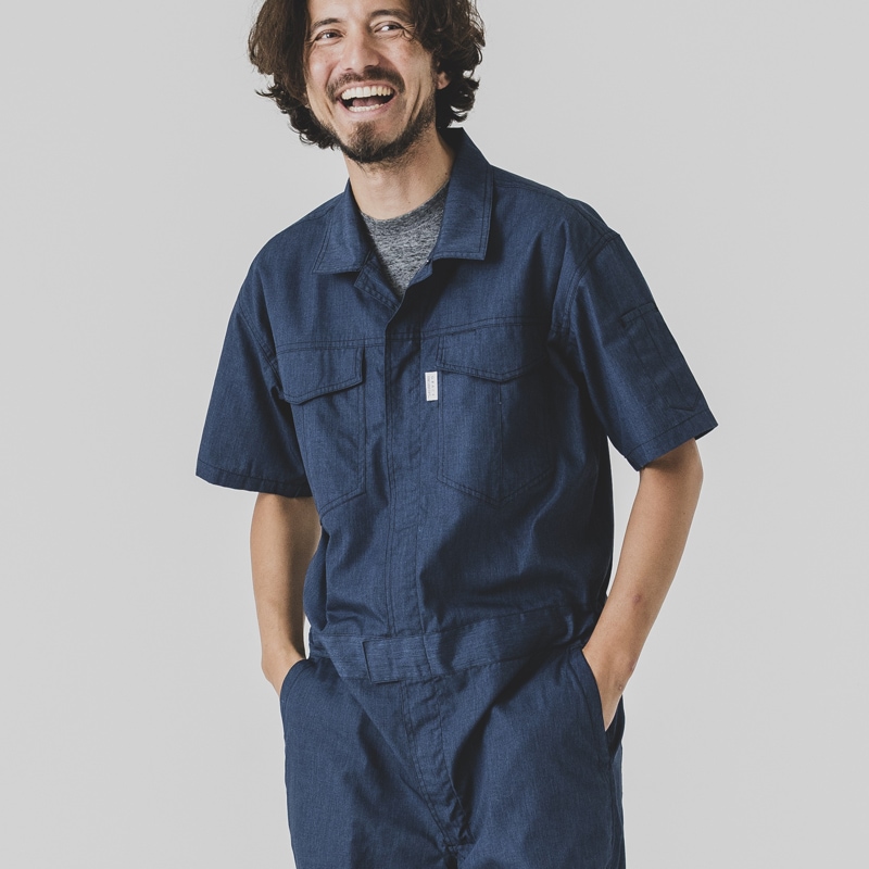 春夏にぴったりな「メランジ調半袖ツナギ GE845」をご紹介。