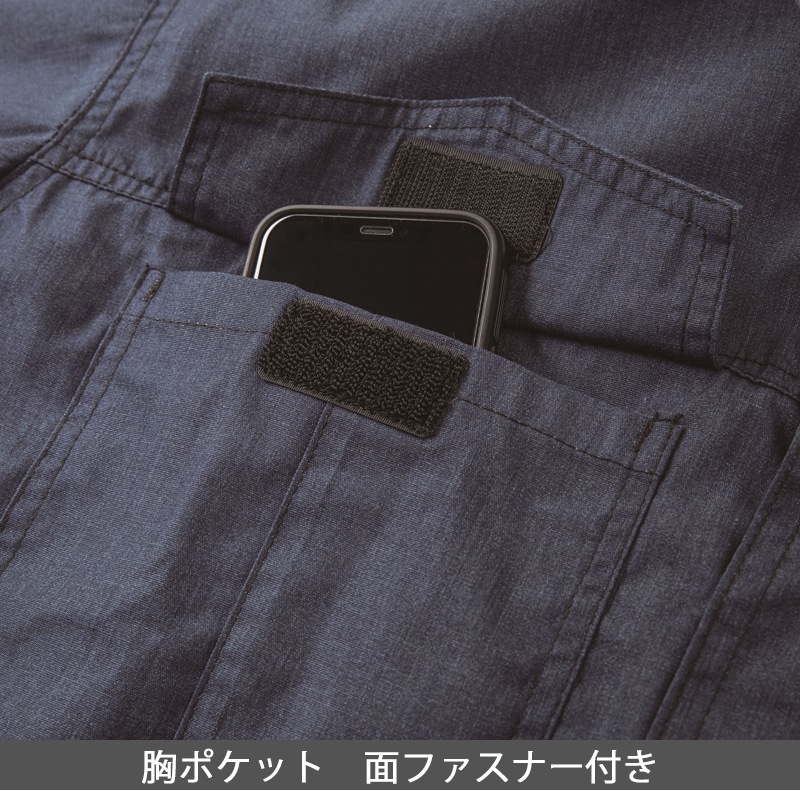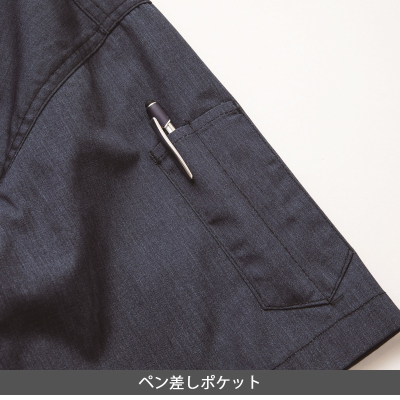 | 特徴 | ペン差しポケット、胸ポケット、メランジ調シンプルデザイン |