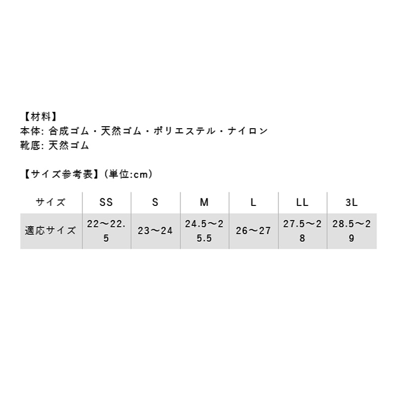 | サイズ | SS(22.0~22.5) S(23.0~24.0) M(24.5~25.5) L(26.0~27.0) LL(27.5~28.0) 3L(28.5~29.0) |