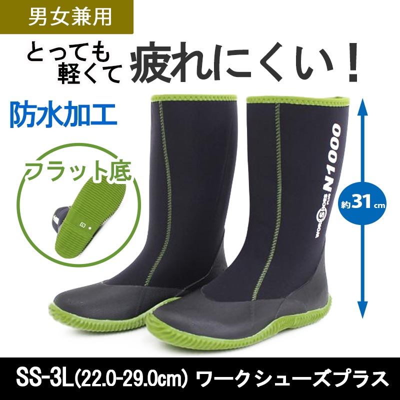 ワークシューズプラス N1000 防水長靴 軽量 22.0-29.0センチ SS-3L アトムワークス 久富勝