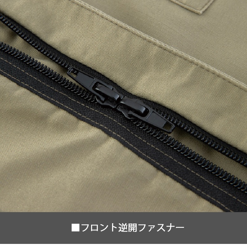 2.逆開ファスナー:フロント逆開ファスナーのため、より快適な着用が可能