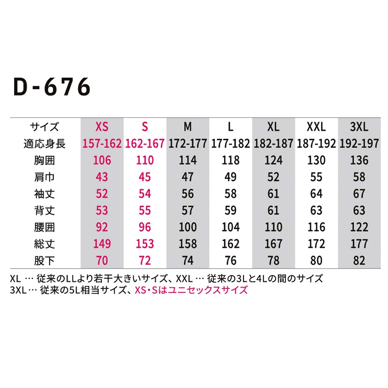 | サイズ | XS、S、M、L、XL、XXL、3XL |