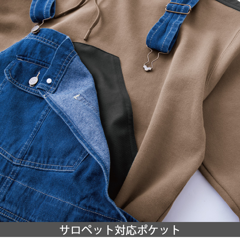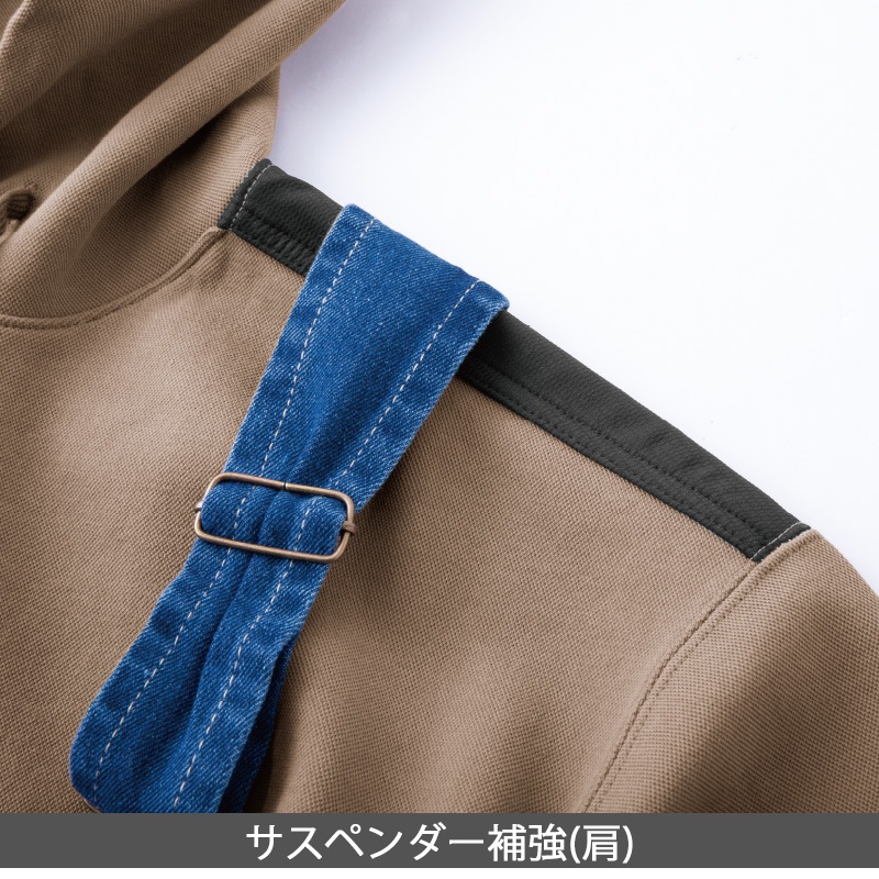| 機能 | サロペット対応ポケット、サスペンダー補強(肩)、脇ポケット、フード紐通し穴(2WAY)、フード紐先端に樹脂キャップ |