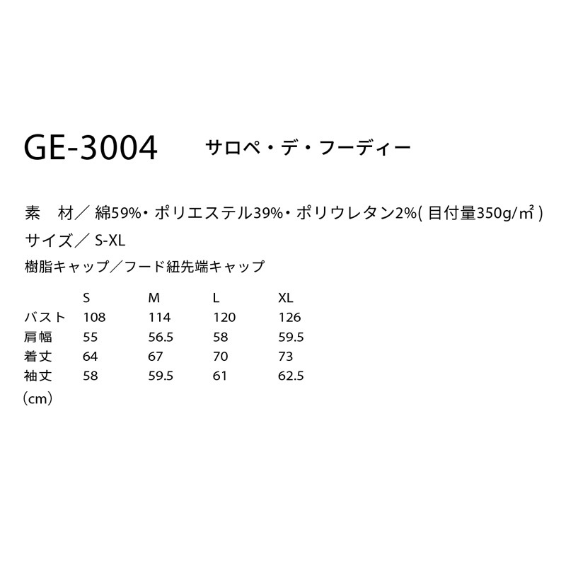 サロペ・デ・フーディー GE3004 年間 パーカー 軽量アウター グレースエンジニアーズ エスケー 作業服 S-XL GRACE ENGINEER'S