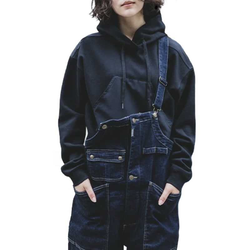 サロペットにパーカーを合わせる鉄板コーデを、ワンランクアップさせるのがこのサロペ・デ・フーディー。