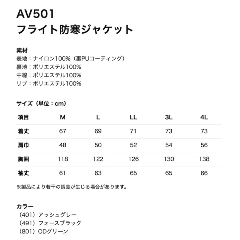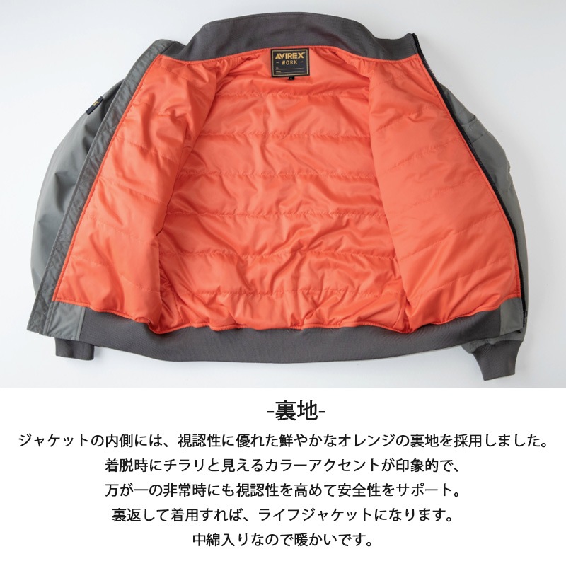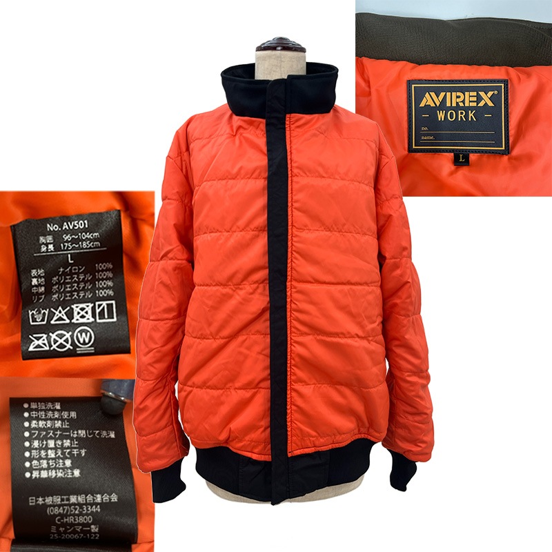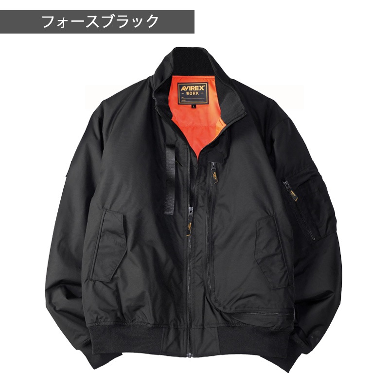 AVIREX フライト防寒ジャケット AV501 秋冬 アヴィレックスワーク 防風 中綿 大型ファスナー 多機能ポケット 反射プリント M-4L クロダルマ