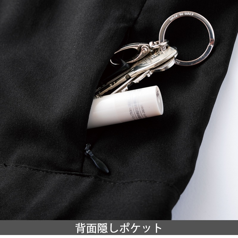 | コイルファスナー | 前立て、胸ポケット、ヒップポケット、背面隠しポケット、ヒップオープン |