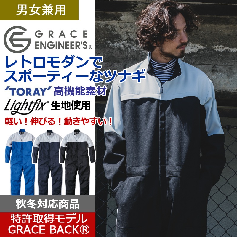 エンジニアーズツナギ 秋冬対応 GE820 ヒップオープン 長袖ツナギ S-5L グレースエンジニアーズ