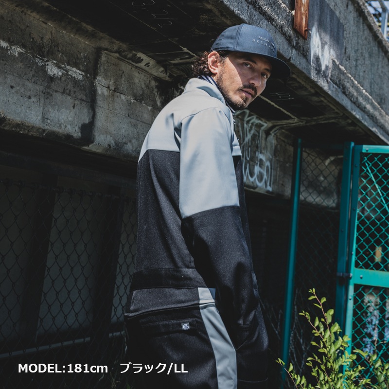 懐かしさの中にトレンドのスポーティーさも併せ持ったデザインが印象的。ですが、スペックはプロ仕様で東レ(株)の高機能素材「ライトフィックス(R)」を採用して安心安全の帯電防止生地生地でJIST8118にも適合。ストレッチ性も当然備えていて生地面からも高級感が溢れています。何を入れるかはあなた次第の背面シークレットポケットなど、ディテールにもこだわった上質なツナギです。