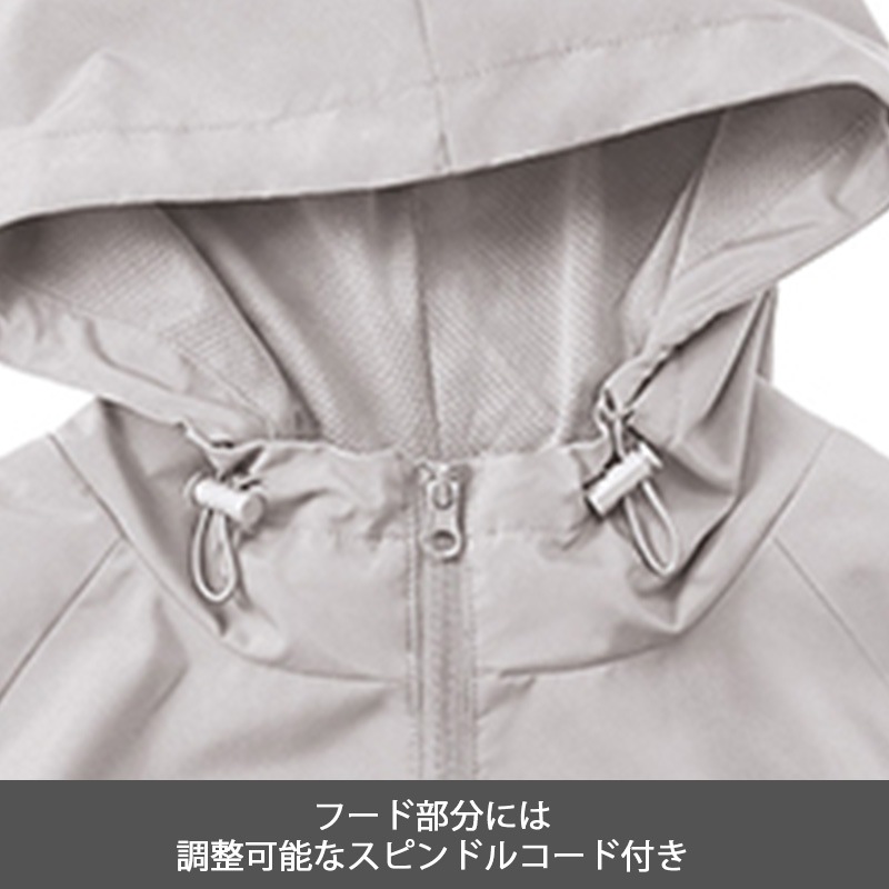 | 特徴 | 撥水、UVカット、防風フィルム、防汚、手首ゴム、裾ゴム、蓋つきの2つのポケット、蒸れにくいメッシュ地の裏地 |
