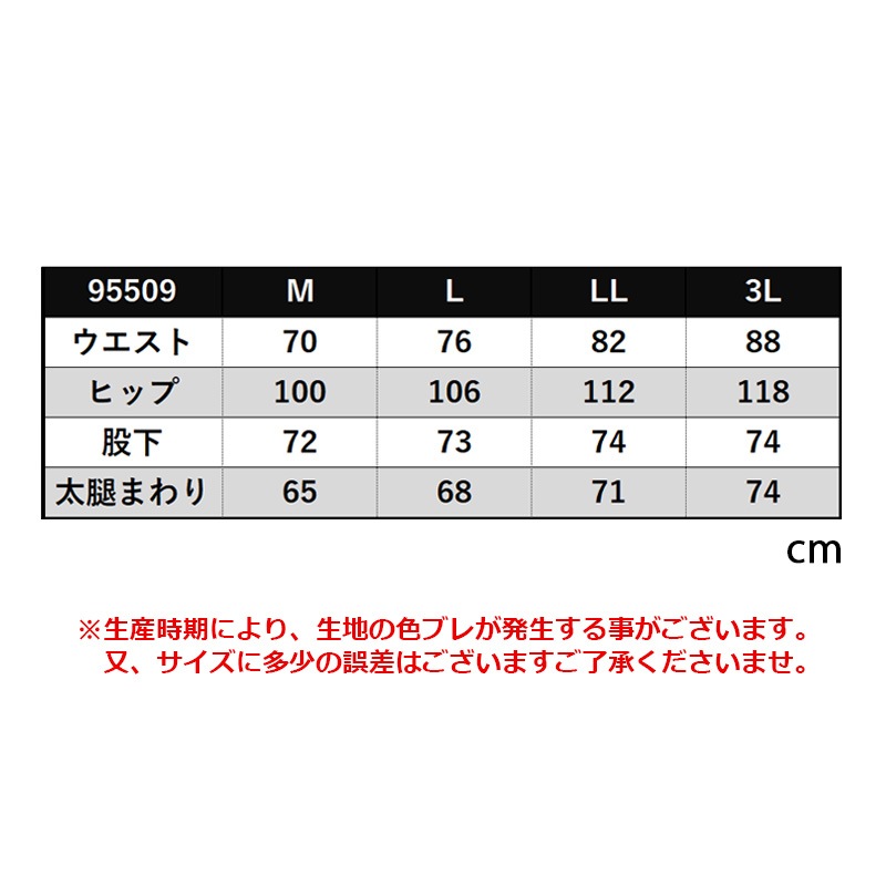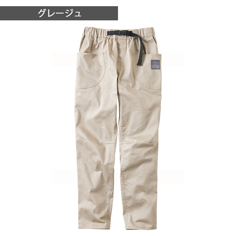 | 特徴 | ストレッチ、UVカット、2つのボタン付きワイドポケット、2つのポケット、股部分マチあり、膝ダーツ、ウエスト平ゴム、バックル、テープベルト、多用途ループ、ビスネーム |