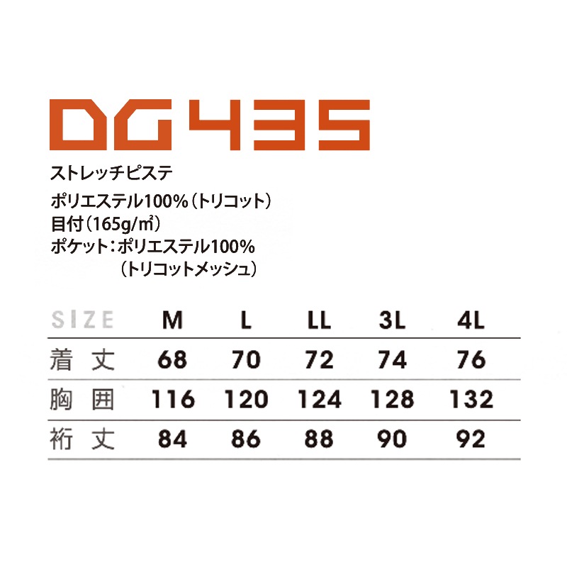 ストレッチピステ DG435 秋冬 防寒 ストレッチ 吸水速乾 トリコット生地 ヤッケ M-4L クロダルマ