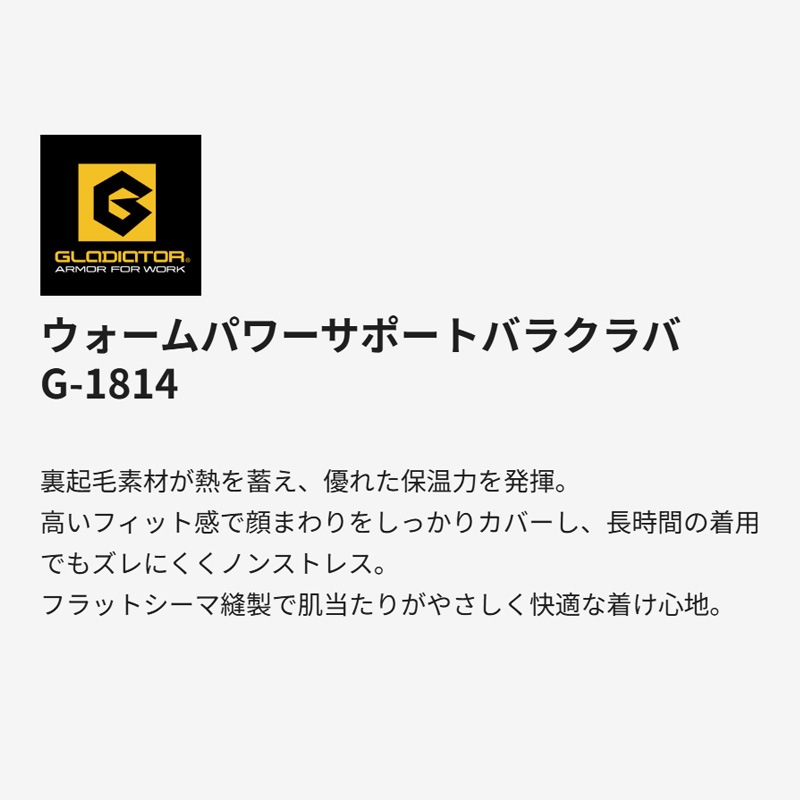 ウォームパワーサポートバラクラバ G1814 秋冬 フェイスマスク 防寒 保温 裏起毛 超ストレッチ UVカット99% UPF50+フラットシーマ縫製 グラディエーター コーコス