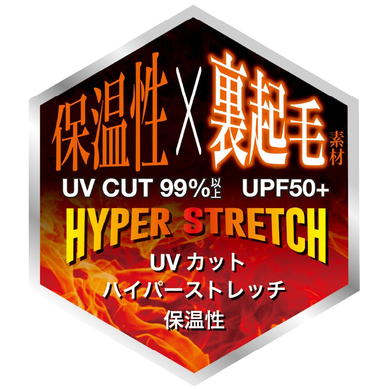 | 機能 | 保温、ハイパーストレッチ、裏起毛素材、UVカット99%、UPF50+、フラットシーマ縫製 |