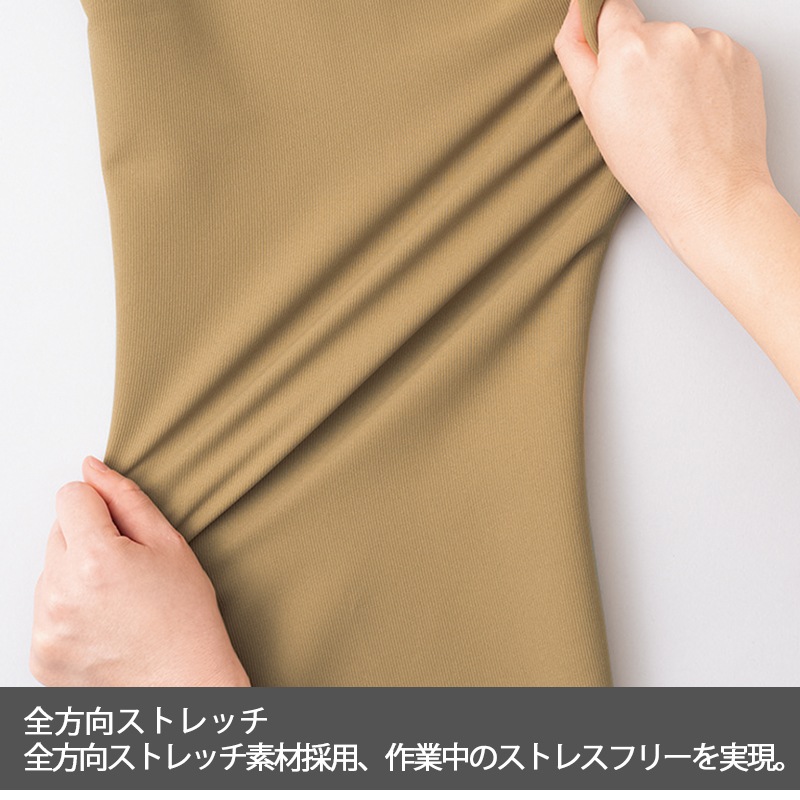 〇全方向ストレッチ素材を採用、作業中のストレスフリーを実現。