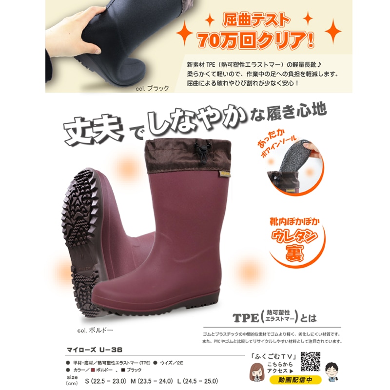 マイローズU-36は、寒い季節に頼りになる防寒向け長靴です。