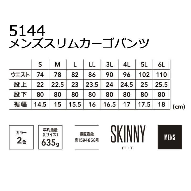 メンズスリムカーゴパンツ 5144 年間 ストレッチ デニム スキニーパンツ S-6L TS DESIGN