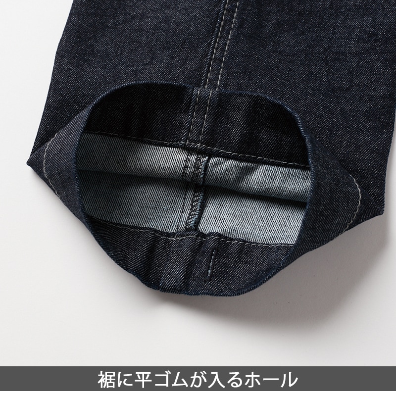| 特徴 | 製品洗い加工、防縮性、ストレッチ、クイックアクセスポケット、両脇ダブルループ、帯裏オリジナルテープ、裾に平ゴムが入るホール |