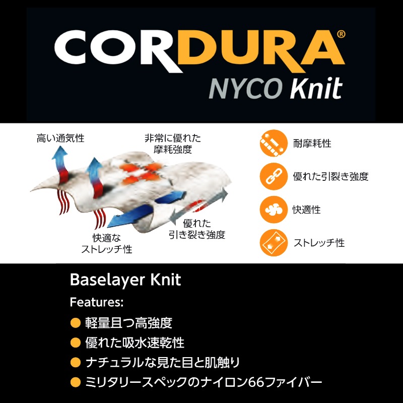 | 素材 | コーデュラNYCOダブルフェイスジャージ(伸長率40%以上) |
