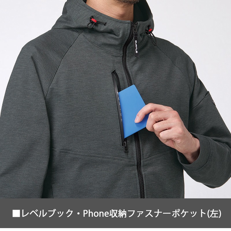 | 機能 | ストレッチ、吸汗速乾、フードスピンドル、ダブルジップ仕様、レベルブック収納ポケット、袖ペンポケット(左)、両脇ポケット |
