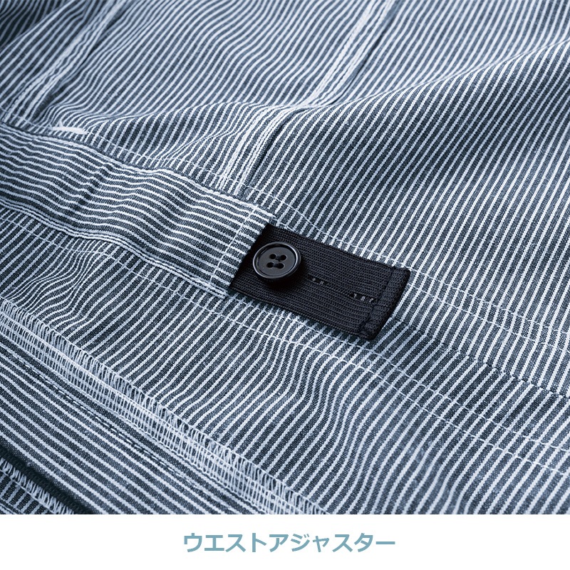 ウエストにはボタン式アジャスターが付いており、体型や作業スタイルに合わせてフィット感を調整可能です。