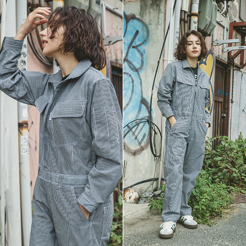 ・綿75%・麻25%のコットンリネン生地で涼しく快適・春夏シーズンに快適な長袖つなぎ