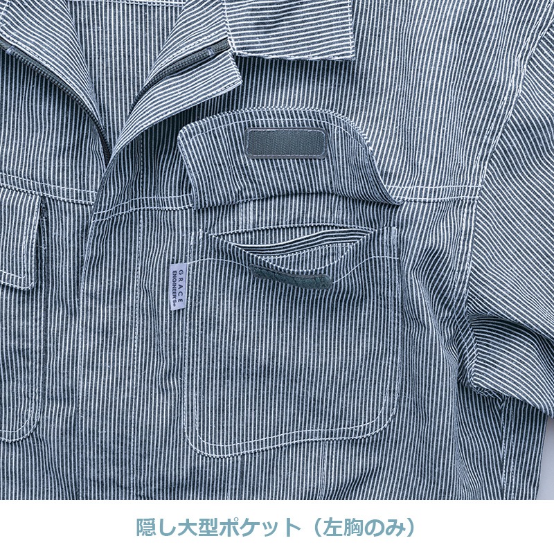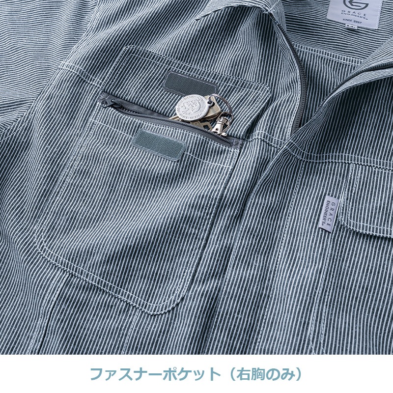 | コイルファスナー | 前立て、右胸ポケット、ヒップオープン |